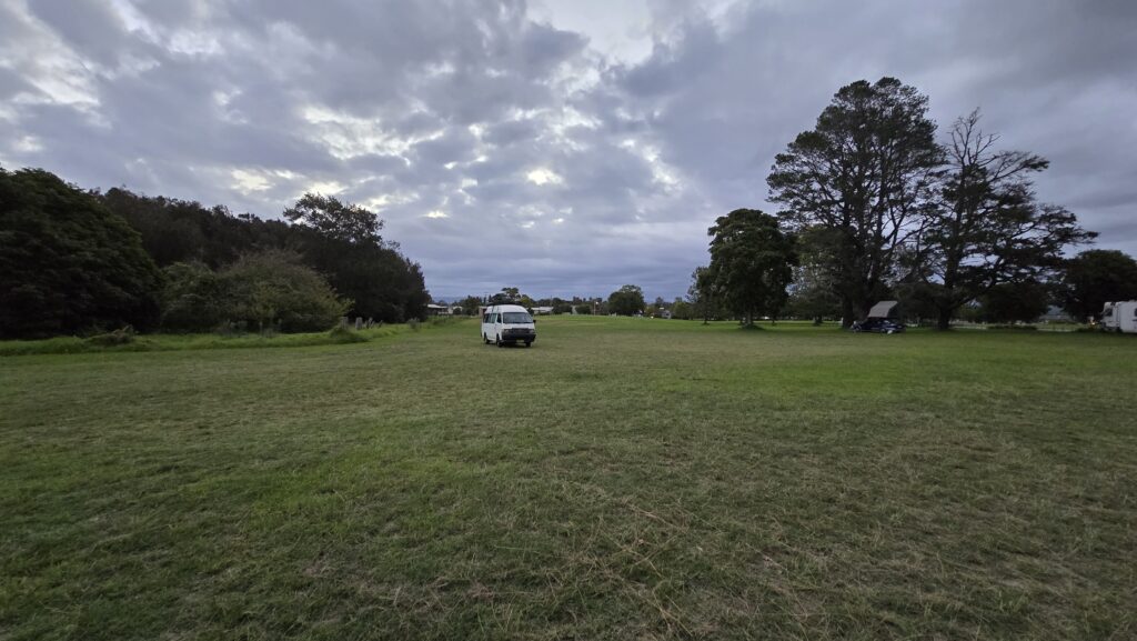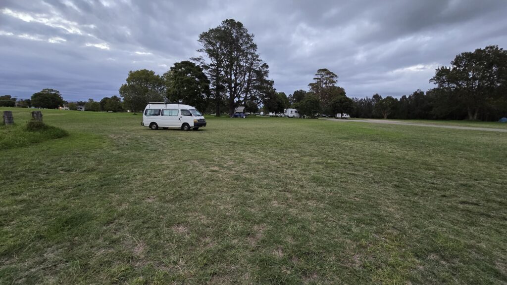 Currently at Riverside Park, which is full of obnoxious holiday makers in motorhomes and buses and caravans. Horrible but tge shade from sun is welcome as is the grass instead of always gravel or bitumen.