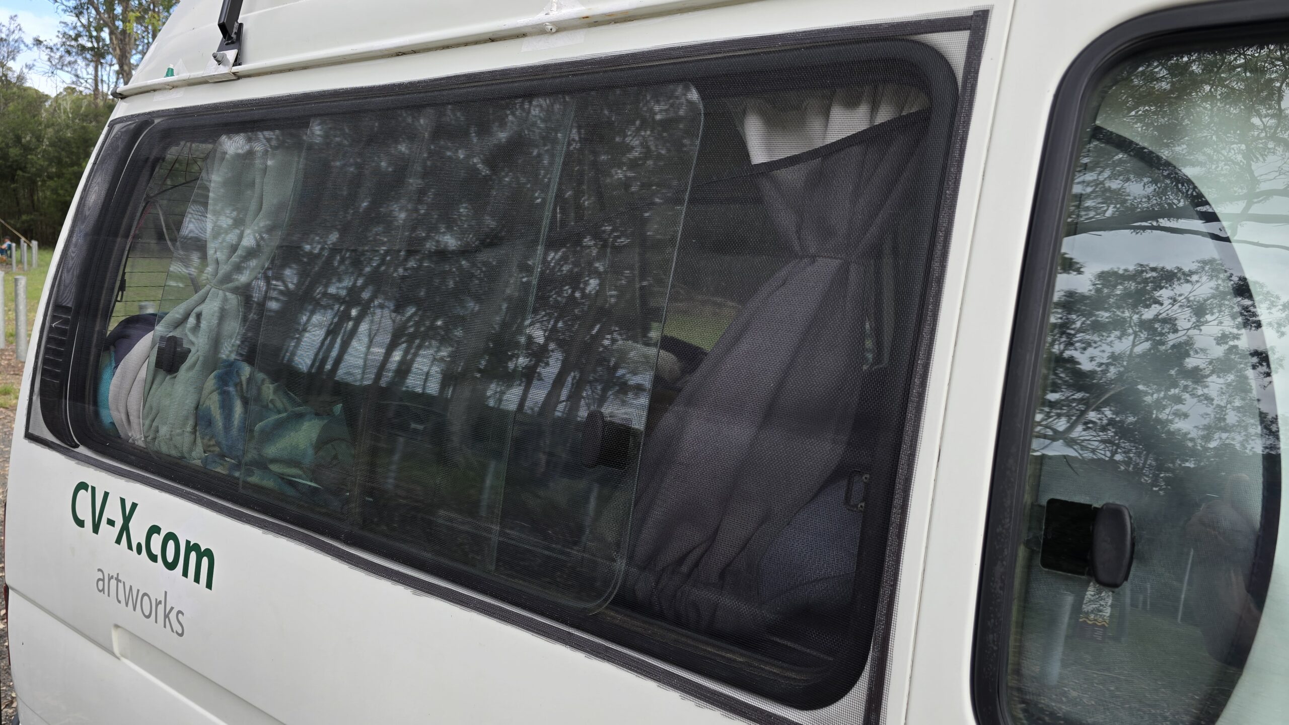 Fly screen. Should be an enormous help, fresh air right near my face, and flowing through, without mosquitoes.