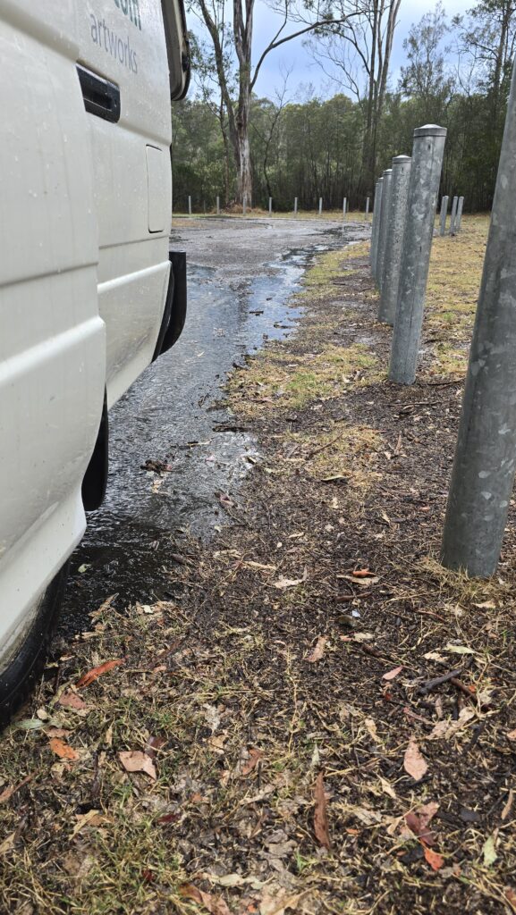 Light rain during the day, after my shower at the sth side river spot. Then a drive to Sth Head for a bit of battery charging and a look, where I threw out the old shoes. $12 and stinky dirty and didn’t last long. Sad, though. Seriously uncomfortable.