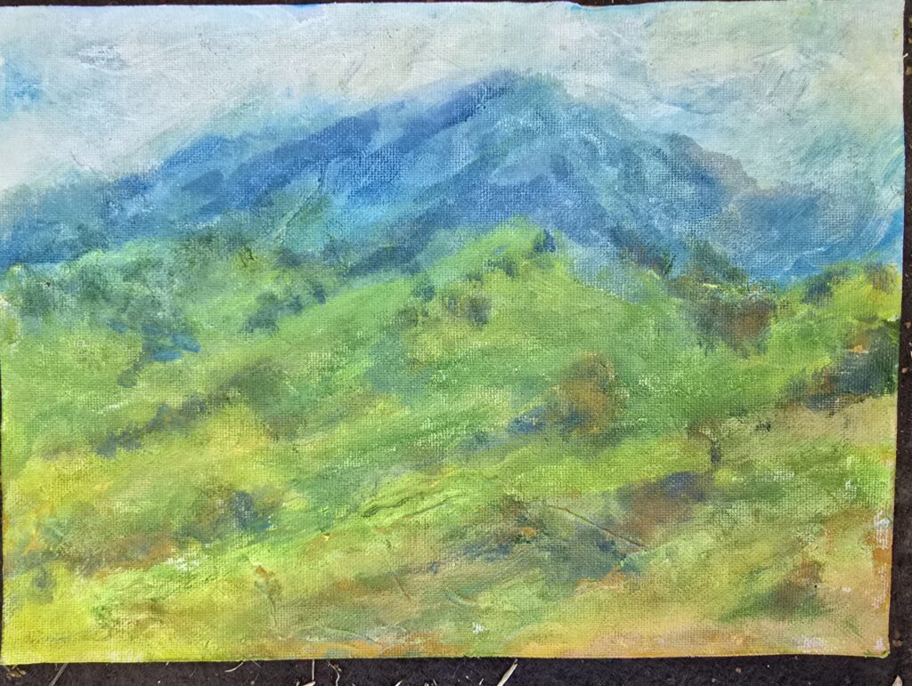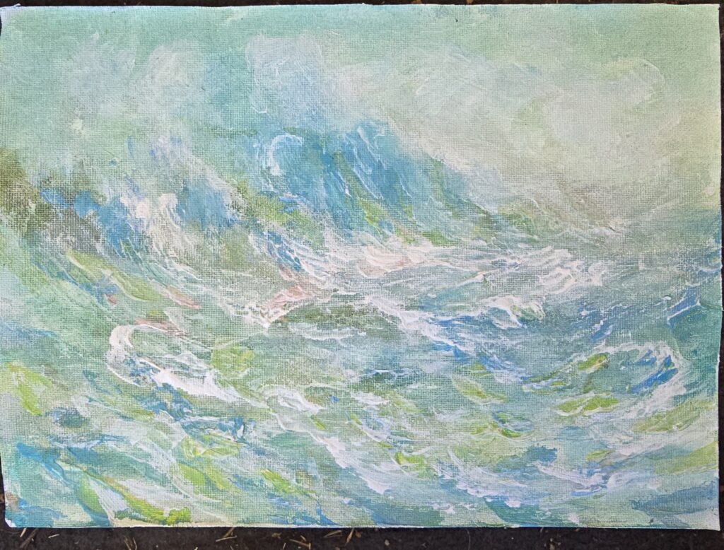 And before that I worked on all five paintings but got threatened with rain. It’s been horrible mongrel strong wind weather again today.