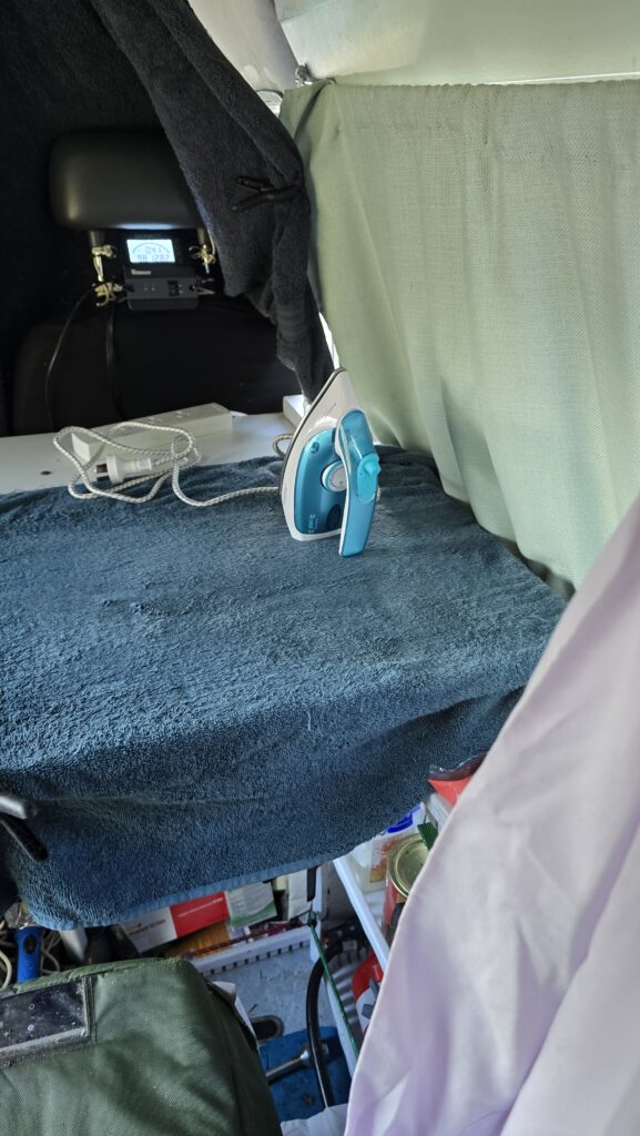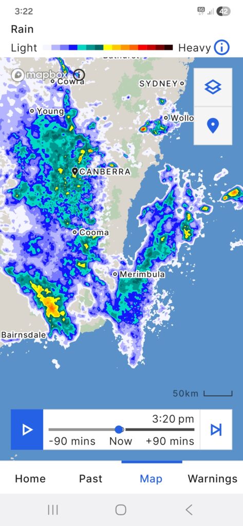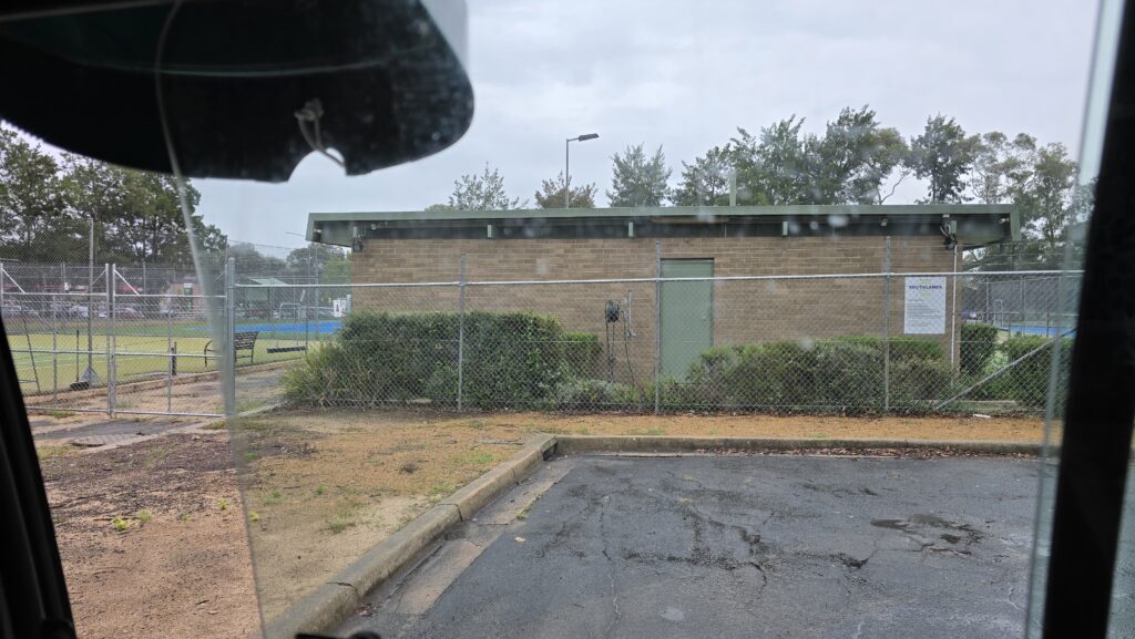 I’ve gone around to the tennis courts and parked the solar panels under a tree. Rain has started to spatter. Been a storm forecast for a couple of days.