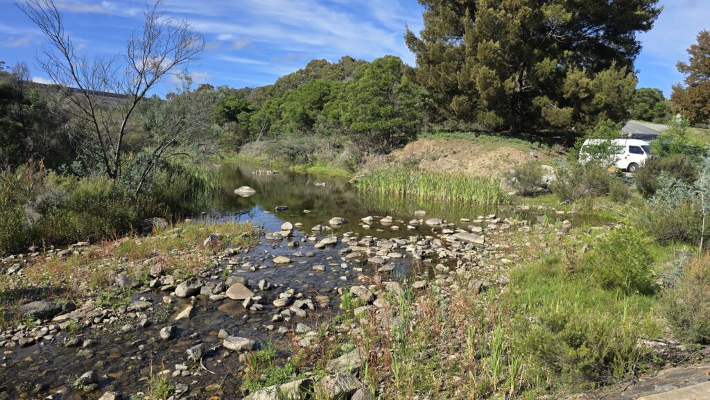I just cant think of anywhere. I don’t want to go back to the coast and get in the Moruya cycle, although that is the easiest and cheapest. I don’t want to be caught out without petrol either in a place that allows me to stay such as Yass.