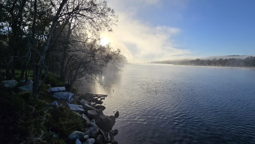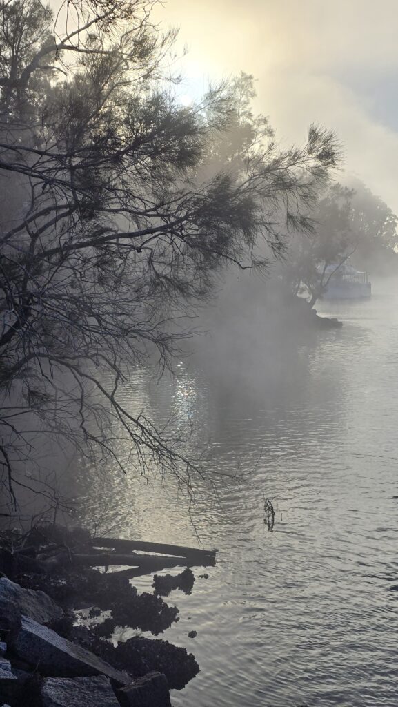 Mist shifting off the river and spilling onto land. Absolutely spectacular.