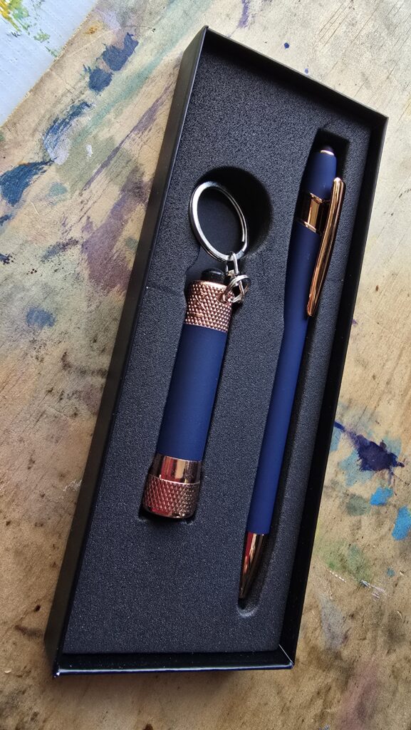 Another homeless guy, Ian, whom I first met under the bridge as a fellow refugee from the big storms, and whom I’ve bumped into a couple of times and waved in passing, today gave me this. The pen feels delightful and book ready; the matching piece is a torch, bright, too.
