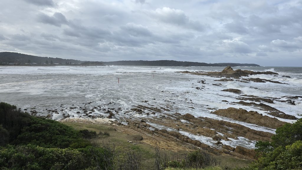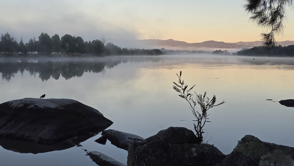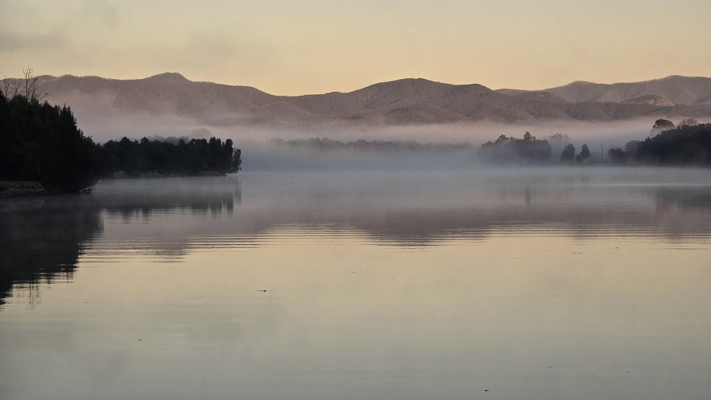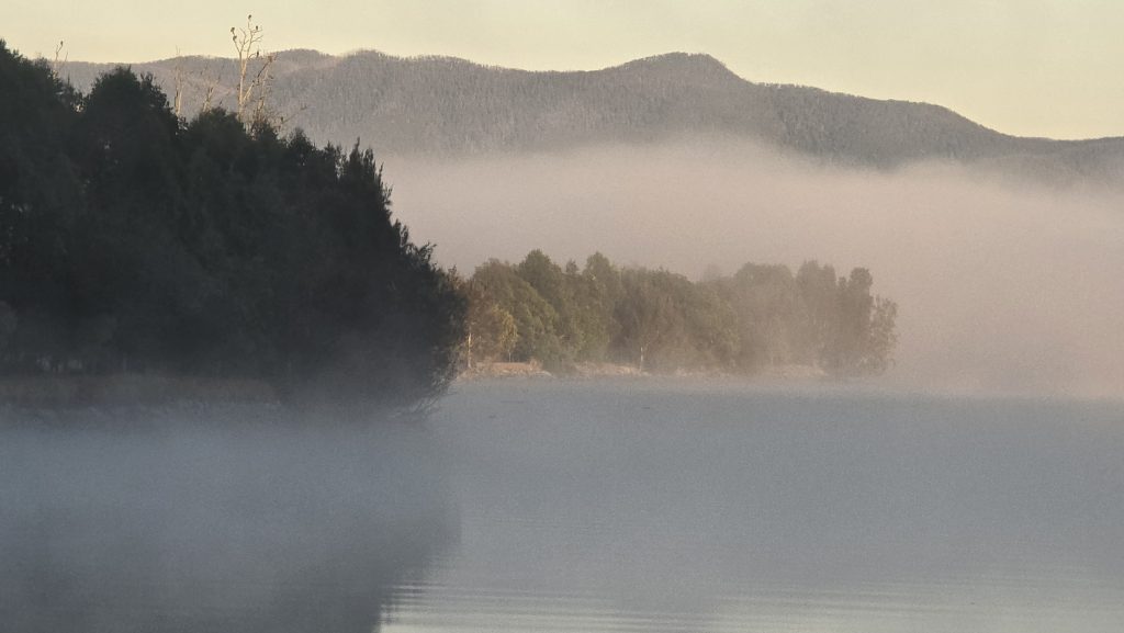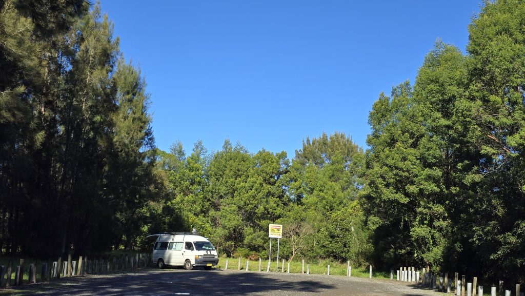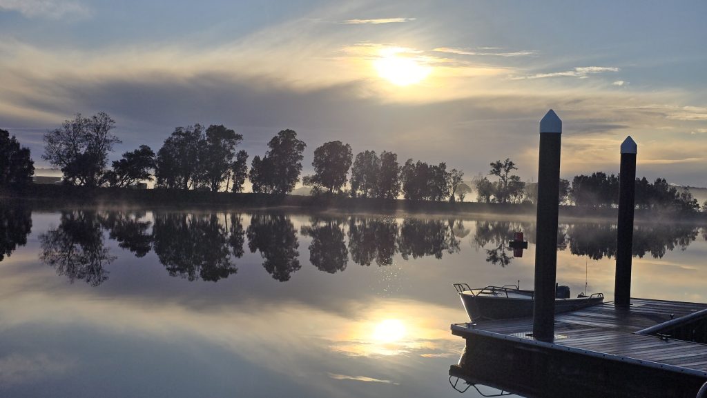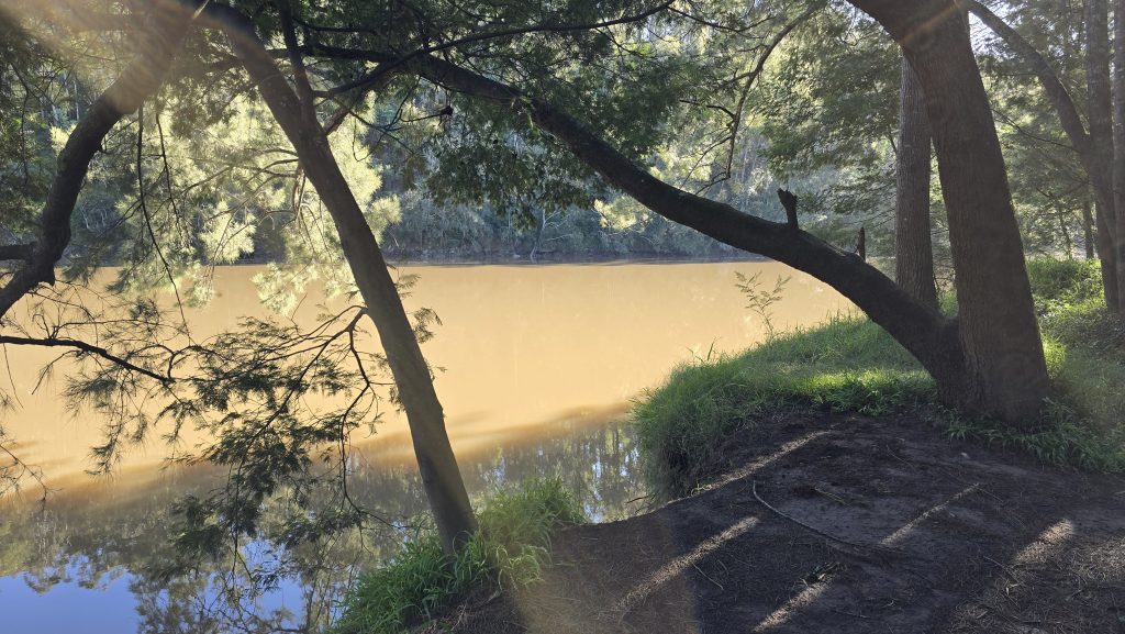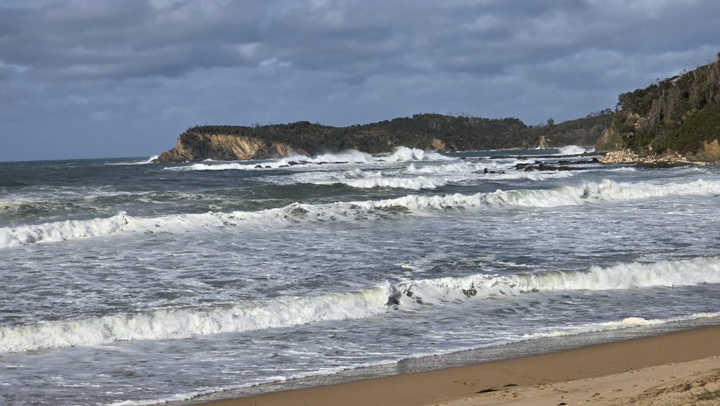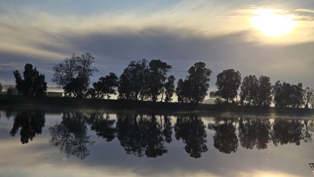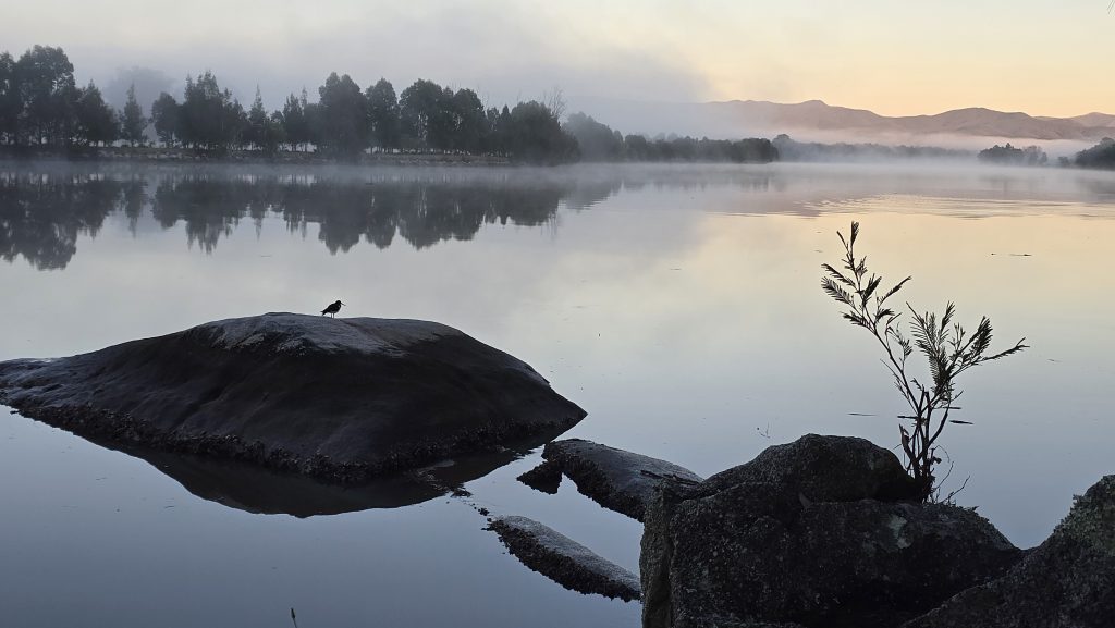 Earlier. A ritual has developed. Rip into a coffee in the dark, very early (around 4AM). An outright pleasure. While reading and commenting at The New York Times. With darkness barely nudged aside so I can see sufficiently to walk around the car and not hit it, pack up. Warming the engine all the while. Drive to Moruya. And get blown away along the valley flat, and then again at the river: