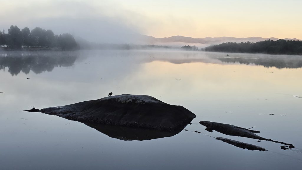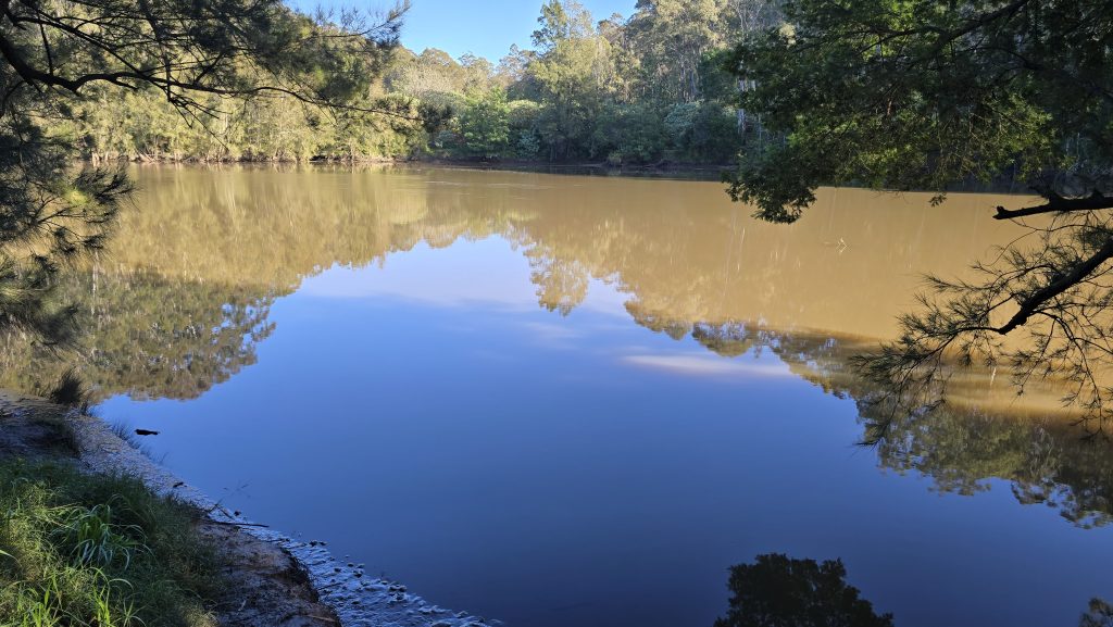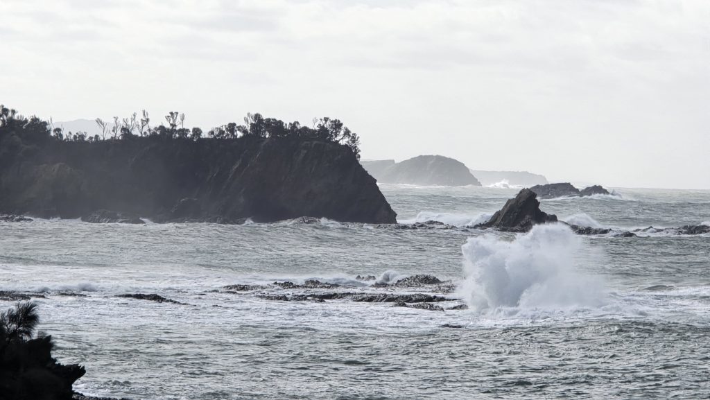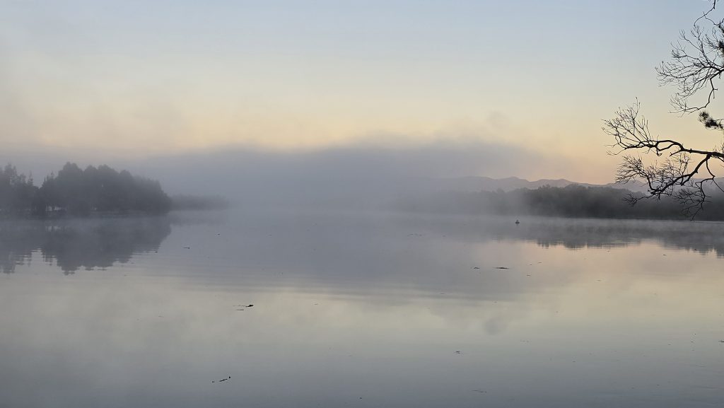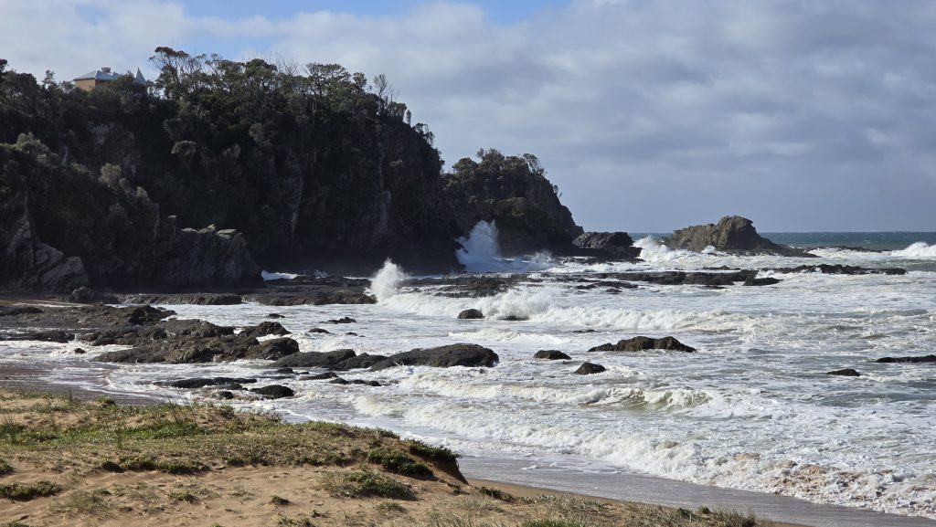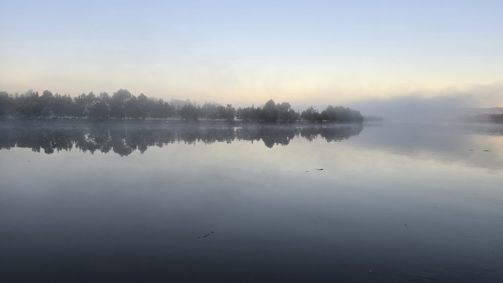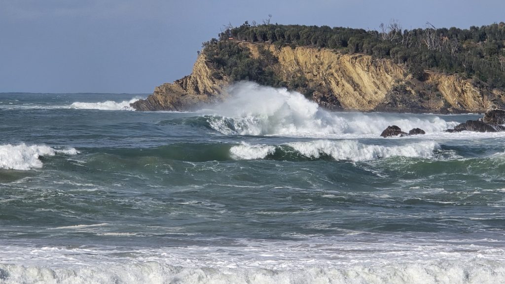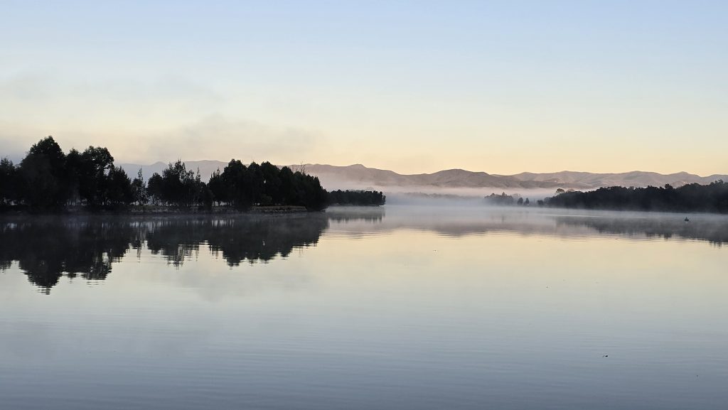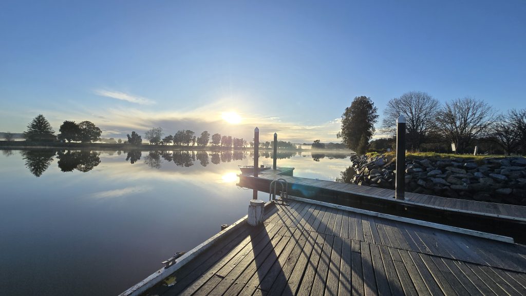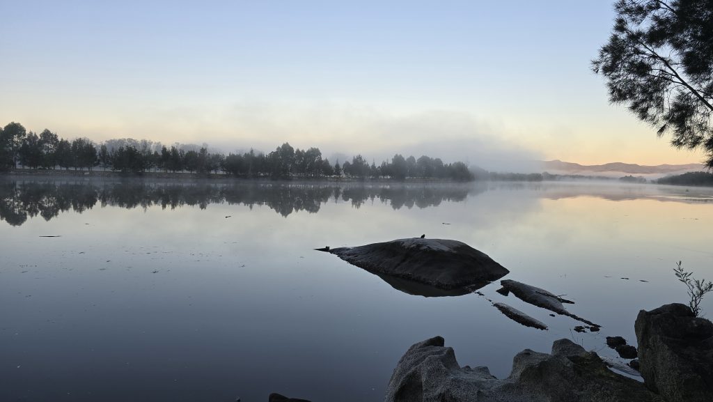 Earlier. A ritual has developed. Rip into a coffee in the dark, very early (around 4AM). An outright pleasure. While reading and commenting at The New York Times. With darkness barely nudged aside so I can see sufficiently to walk around the car and not hit it, pack up. Warming the engine all the while. Drive to Moruya. And get blown away along the valley flat, and then again at the river: