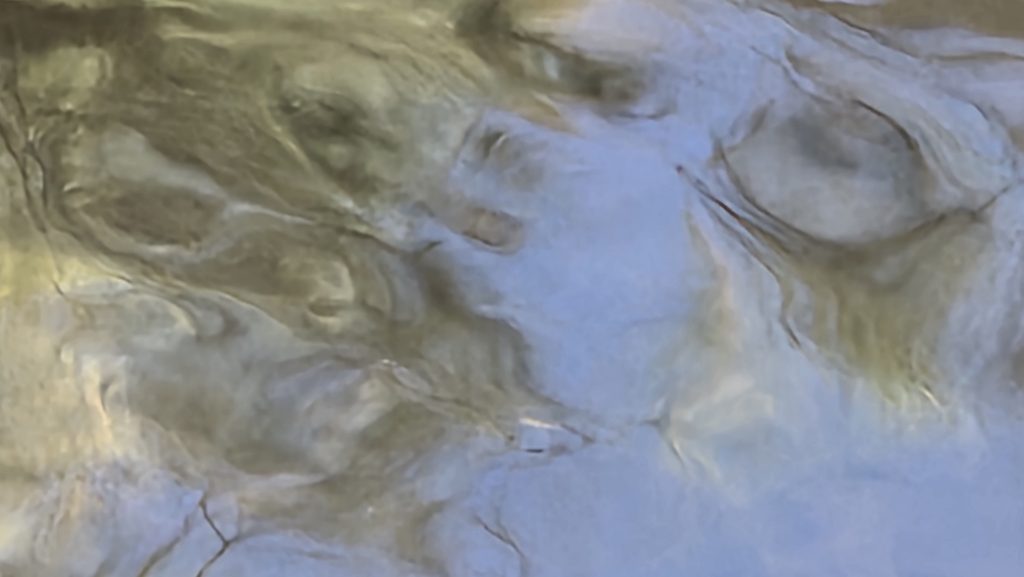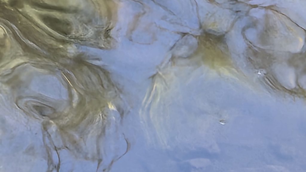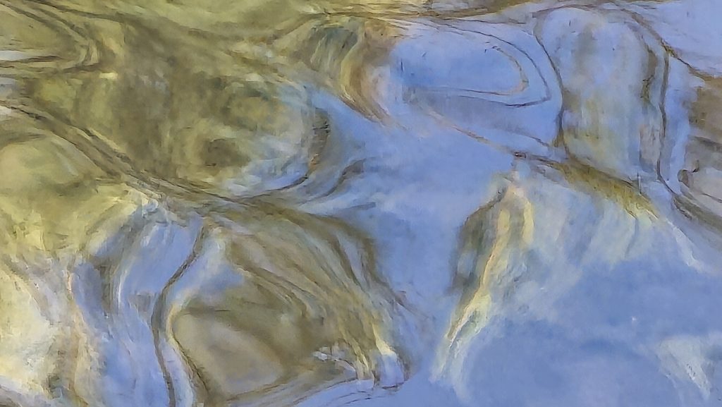 Some interesting shots. Firstly the camera has caught the muddy water’s edge, where reflected blue sky settles in visual pools or both colours are twisted and swirled when lapping at the boundary. Also the blue jerking with muddy tan in close up, after wider framing for context.