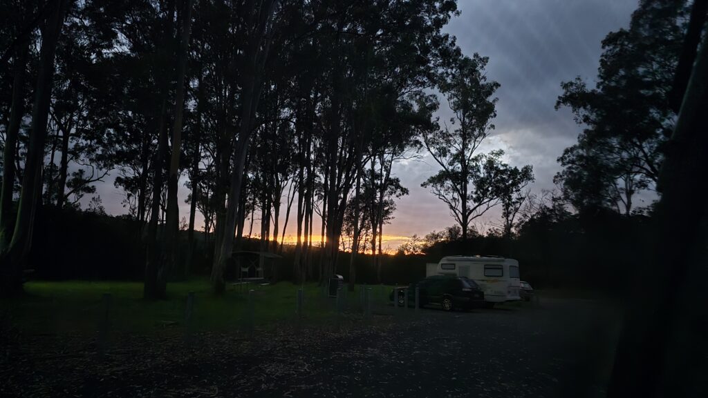 Waldrens Swamp. Bit early but I get a few hours before the stress. One bloke here, been here before, a motohome that opens out and he tows a car behind. Barry met him here once, said he said he’s been on the road since early 2000s.