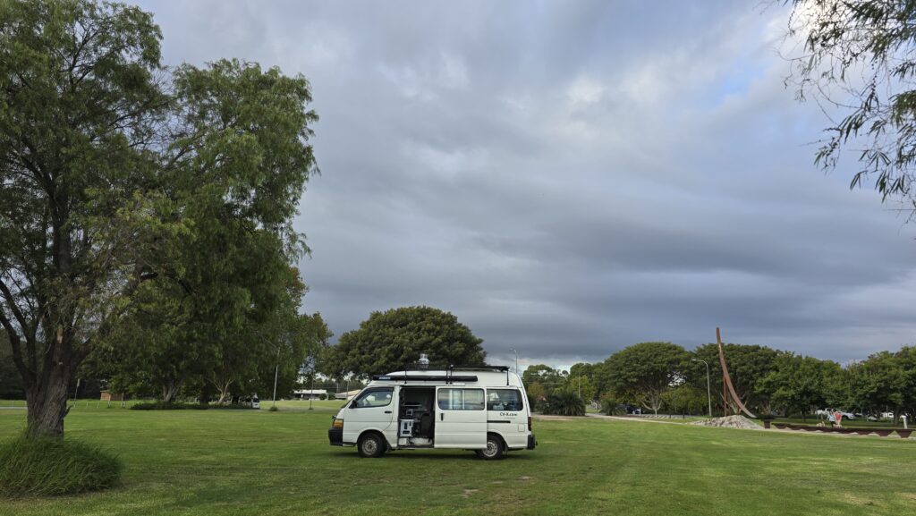 Very tired and nothing day. Shower at Moruya Pool, southerly, then Batemans Bay for van containers, and bits but didn’t buy much. Measured and located the inverter but didn’t go ahead. Need a sparky re earthing. Just not ready for the impact and I won’t use it hardly.