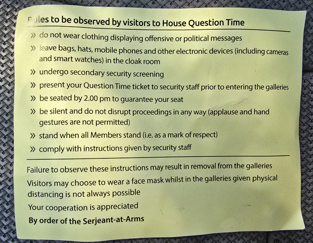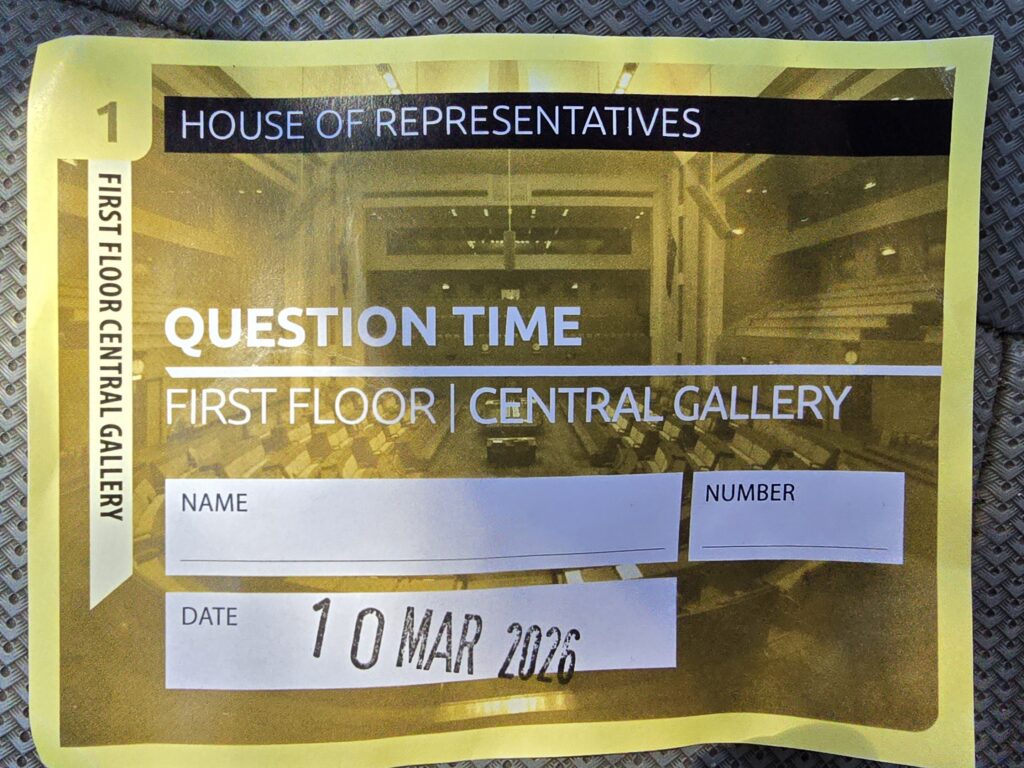 I finally did it. I went to Question Time in the House of Reps.