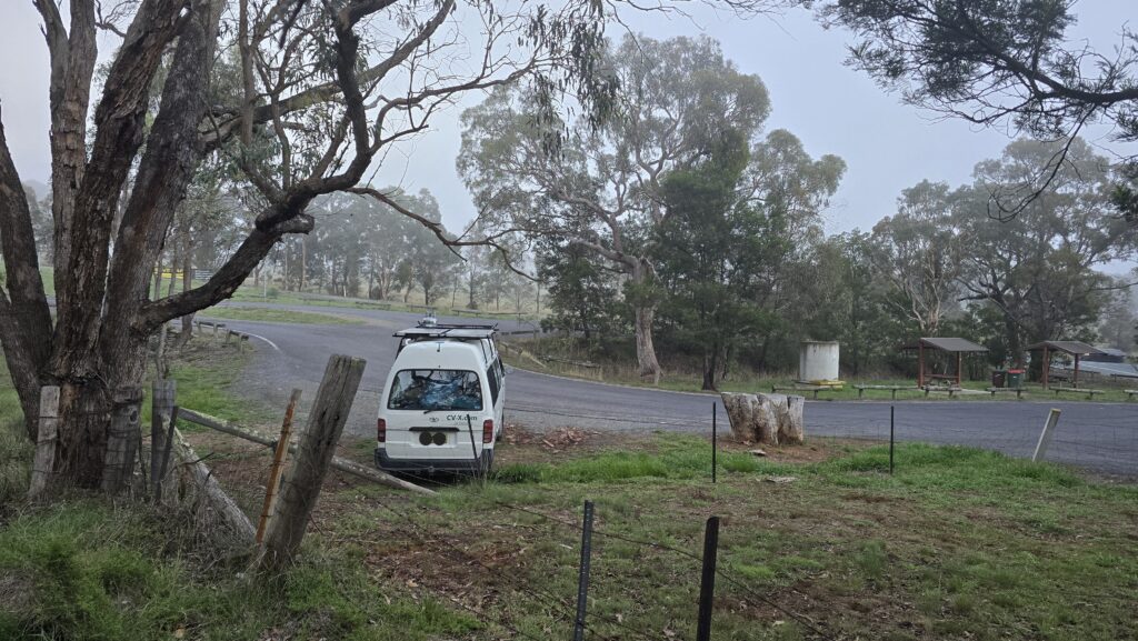 Waldrens. Only one van here, at the top, old guy well behaved been here two nights that I have. Hoping that the Pests O Waldrens Swamp don’t arrive. I’m at the bottom this time in the turning circle exit.